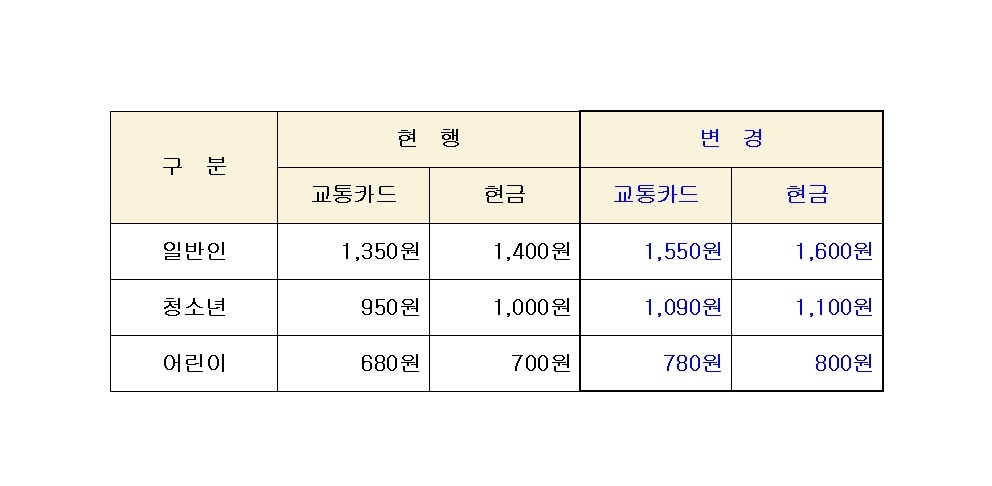 ※ 요금인상 적용일 : 2025. 10. 25.(토) 첫차부터