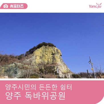 안녕하세요. 양주 시민 여러분 SNS 서포터즈입니다! 한껏 풀린 봄 날씨에 산책 많이 즐기고 계신가요? 옥정에 들어서면 저 멀리 큰 바위 하나가 보이실 텐데요. 바로 이게 독바위랍니다. 근데, 이 독바위를 올라가 볼 수 있다는 사실 알고 계셨나요? 궁금하시다면 천천히 글을 따라와 주세요. 아래 자세히 설명해 드릴게요! 옥정동에 자리한 독바위공원은 누구나 이용할 수 있는 시민공원입니다. 공원에 도착하면 거대한 독바위가 눈앞에 펼쳐져 있는데요. 오묘한 색으로 빛나는 바위라 그런지 더욱 신비한 느낌이 들었답니다. 특히, 각 도시마다 눈에 띄는 랜드마크가 있기 마련인데 옥정에는 단연 독바위가 랜드마크가 아닐까 싶더라고요. 공원.......