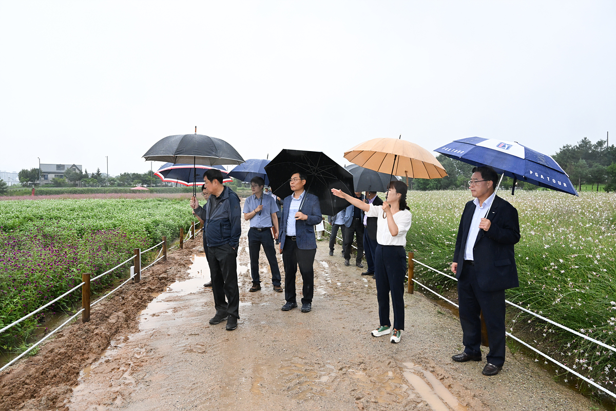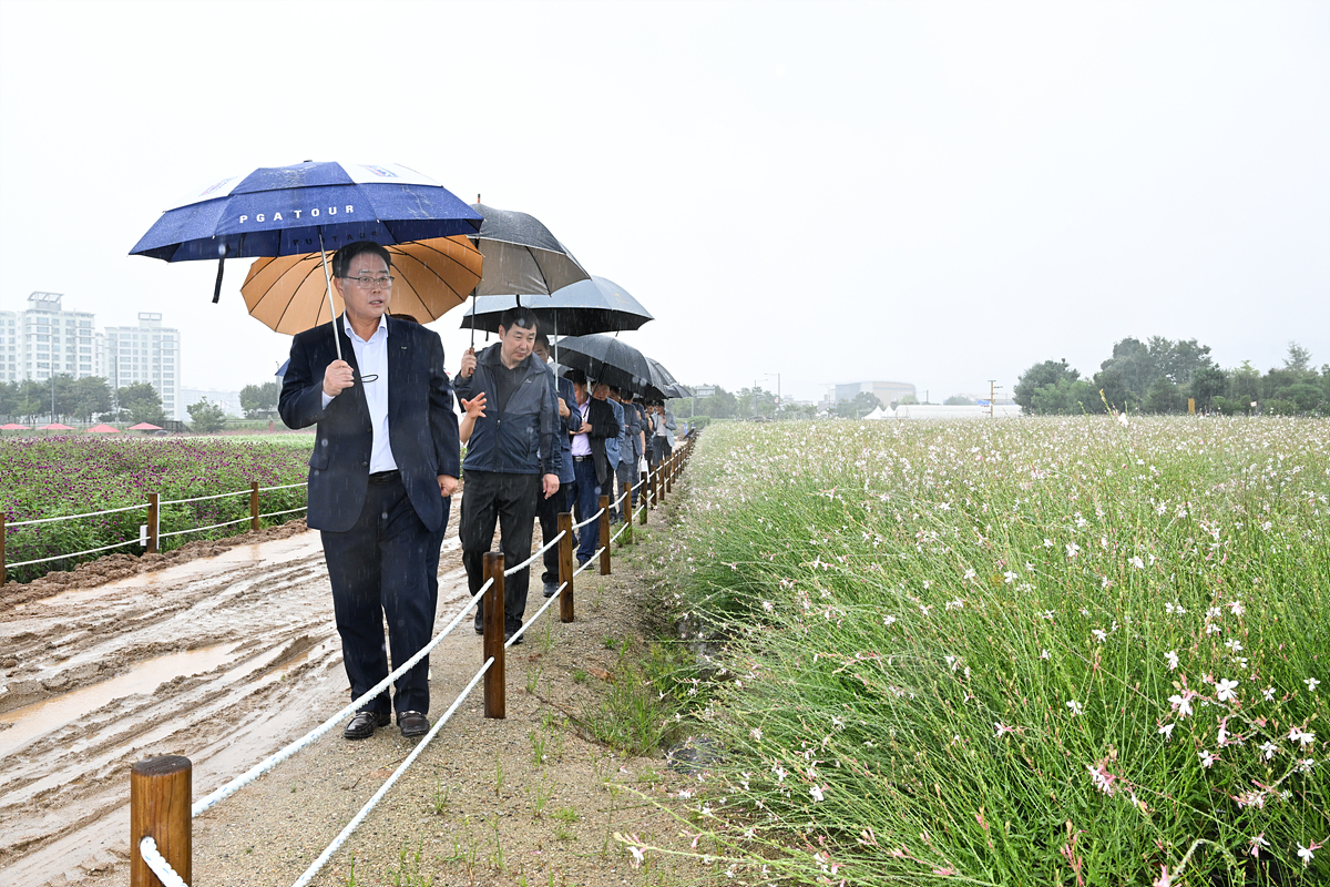 지난 29일 강수현 양주시장은 직접 현장을 방문, 관계 부서장과 함께 개장계획,경관 작물 식재 상태,주차장,휴게시설 등을 사전 점검하고 안전사고 요인을 최소화했다. 또한, 올해 긴 장마와 극심한 폭염 속에서도 나리농원 꽃밭을 가꾼 직원들을 격려함과 동시에 마무리 준비에 철저를 기해줄 것을 당부했다. |