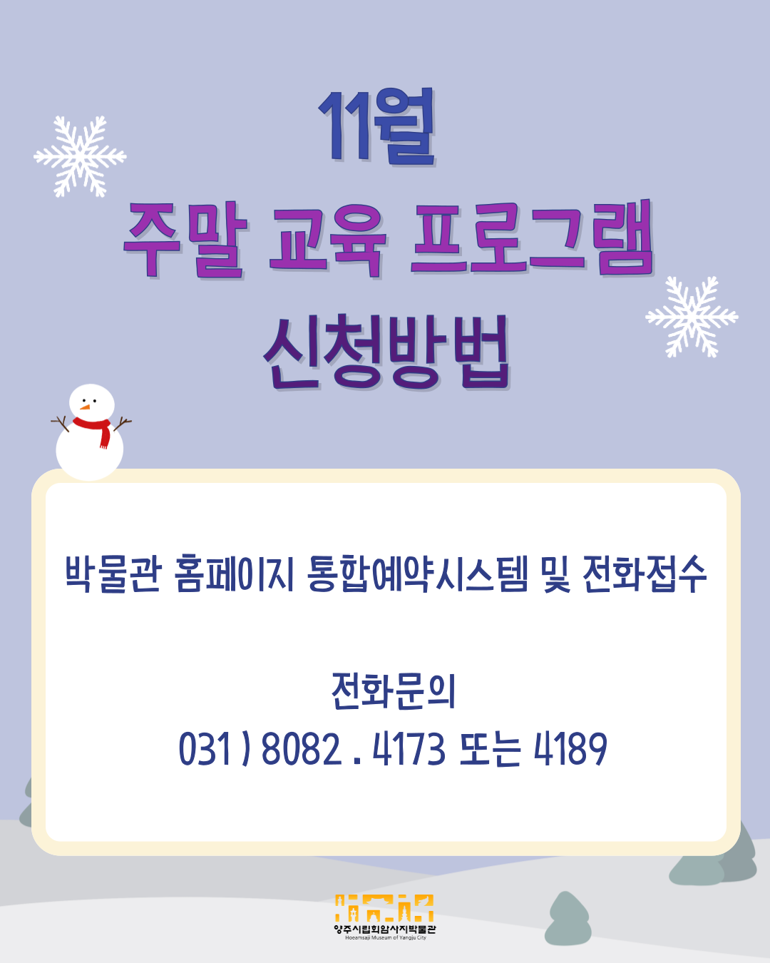 | 제목 | [2025년 11월] 양주시립회암사지박물관 주말 교육프로그램 안내 |