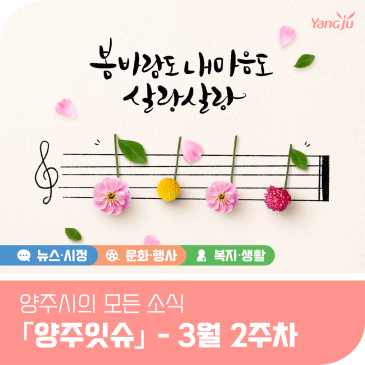 블로그 "저 사람 좀 이상한데?" "군사 시설 근처에서 촬영을?" 설마.. 하는 의심이 든다면, 1338! 「안보 신고 = 1338」 이것만 기억하면 됩니다! ✅ 언제? 언제 어디서나! (24시간) ✅ 어디로? 국번 없이 1338! ✅ 무엇을? 수상한 행동, 수상한 사람! 작은 관심이 큰 안보를 만듭니다. 더 안전한 대한민국을 함께 만들어주세요. ▼신청서 다운로드▼ ▼공고문(신청서) 다운로드▼ ▼신청방법 매뉴얼 다운로드▼ ▼통합회원가입 : 한국마사회▼ ▼신청 접수 : 호스피아 온라인 시스템▼ ▼'양주시농업기술센터' 카카오톡 채널▼ 2026년 03월 13일 30년된 노후 주택, 무료 안전점검으로 안심을 더하세요. 노후 건축물의 관리 사각지대를 해소하고 시민들이 안심하고 살 수 있는 쾌적하고 안전한 주거환경을 조성하기 위해 「소규모 노후 건축물 안전점검 지원사업」을 추진하오니 시민 여러분의 많은 관심과 신청 부탁드립니다. ▼신청서 다운로드▼ ✅ 문의처 양주시 건축과 건축안전팀 ☎ 031 8082 6657 2026년 03월 12일 책으로 달리는 즐거움, 당신의 독서 코스를 완주하세요! ♂ 책 읽는 즐거움을 느끼고 독서를 생활화 할 수 있는 계기를 마련하기 위해 독서와 마라톤을 접목해 도서 1페이지를 2m로 환산, 독서코스를 완주하는 특별한 마라톤 대회인 「제16회 독서마라톤 대회」를 추진하오니 시민분들의 많은 관심과 참여 바랍니다. ▼양주시도서관 홈페이지▼ ※ 3월 16일(월)부터 신청 가능합니다. ✅ 문의처 양주시립도서관 도서관정책팀 ☎ 031 8082 7417 2026년 03월 12일 말과 함께하는 특별한 승마체험 바른 자세와 자신감을 키우세요! 청소년의 건강 증진 및 관내 승마산업의 안정적인 성장 도모를 위해 「2026년 학생승마체험(일반) 지원사업」 대상 학생들을 모집하오니 시민분들의 많은 관심과 참여 바랍니다. ▼신청방법 매뉴얼 다운로드▼ ▼통합회원가입 : 한국마사회▼ ▼신청 접수 : 호스피아 온라인 시스템▼ ✅ 문의처 양주시 농업기술센터 축산과 ☎ 031 8082 7282 2026년 03월 11일 더보기 유튜브 은밀한 취미 2026년 03월 11일 나는 이제 어디로 갑니까… 2026년 03월 10일 단독콘서트 2026년 03월 06일 2세대 왕 2026년 03월 03일 더보기